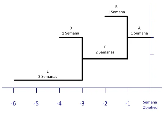 Entonces es conveniente diagramar en un eje de tiempo el árbol de la estructura del producto: