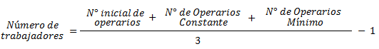 El primer paso consiste en calcular el número promedio de trabajadores, y aunque éste corresponde al cálculo de un método heurístico varios expertos coinciden en la siguiente formulación, que implica efectuar los cálculos de las estrategias vistas anteriormente: