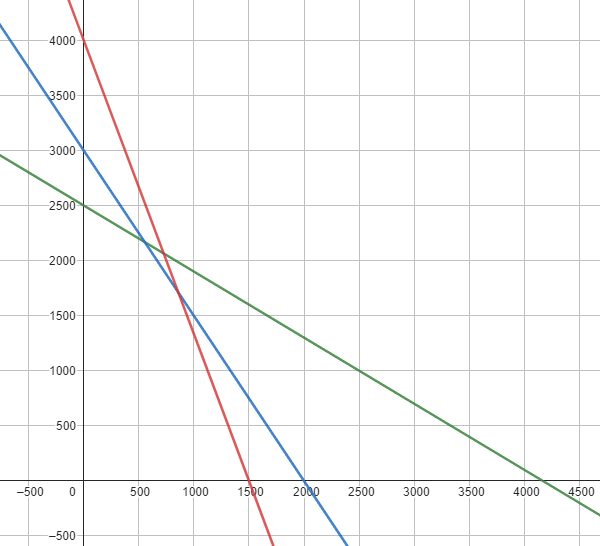 Cada restricción corresponde a una función lineal, lo que significa que gráficamente se representa mediante una línea en el plano cartesiano. Para trazar una línea en el plano cartesiano es necesario conocer al menos dos puntos de la función.