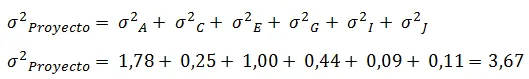El cálculo de la varianza deberá hacerse entonces para cada actividad. Por ejemplo para la actividad A: