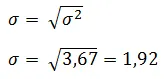 La desviación estándar corresponde a la raíz cuadrada de la varianza del proyecto, es decir: